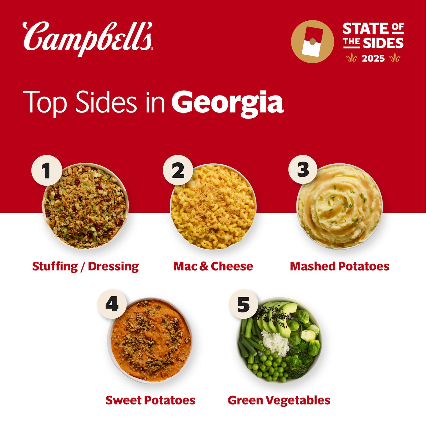 Which sides are the most popular in Georgia? Stuffing/dressing are in the lead with mac & cheese not far behind!
